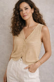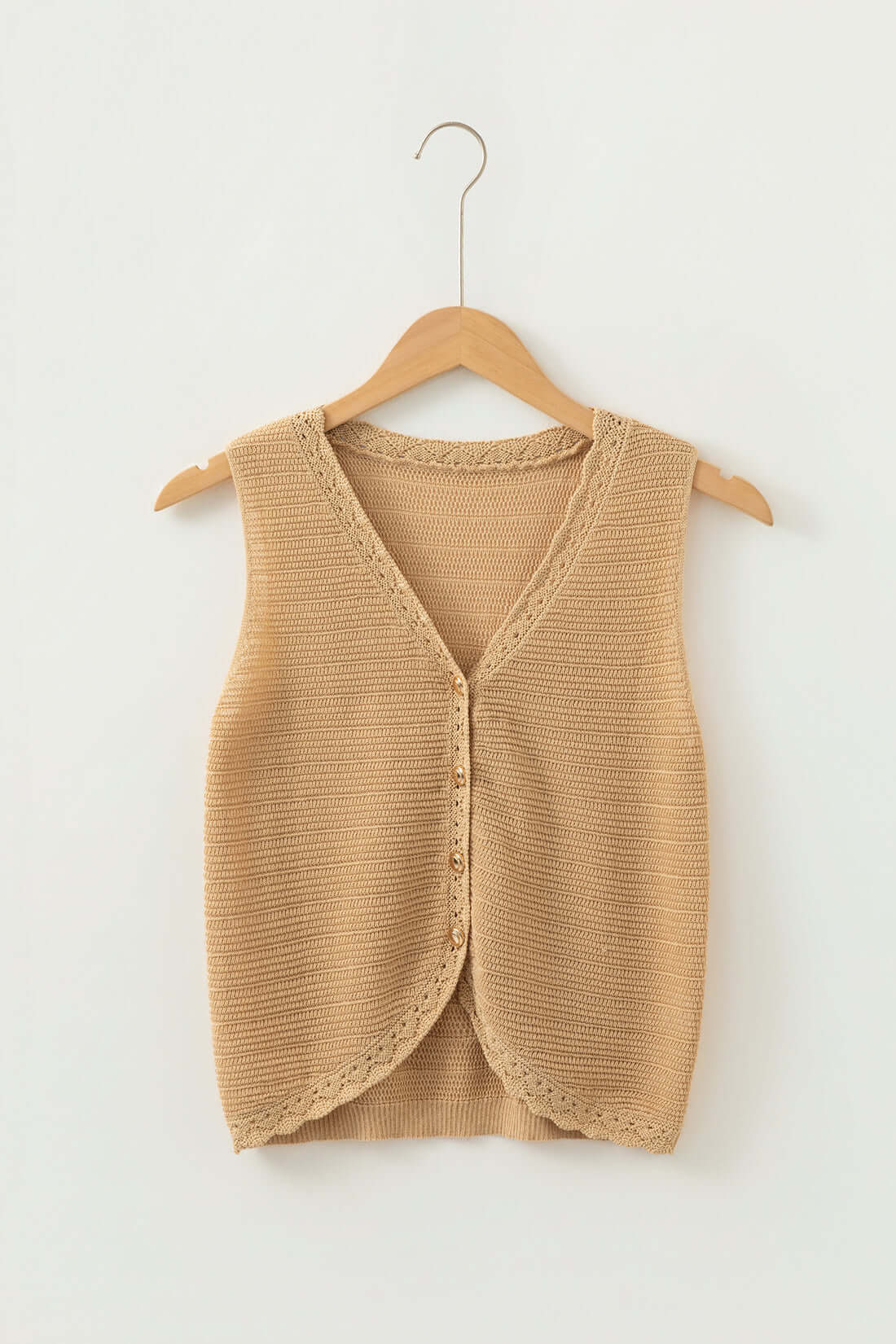 Eleanor Hollow-Out Boho Knit Vest in Pale Khaki